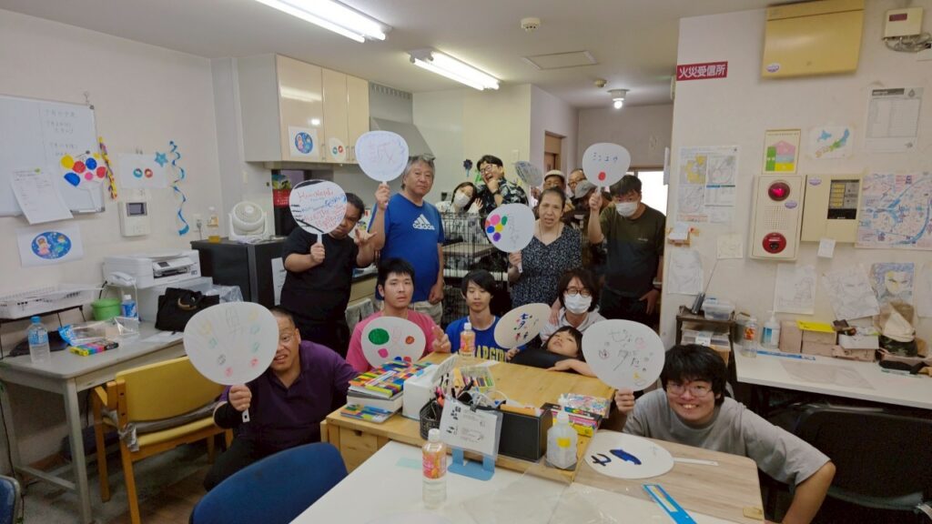 みんなでお歌をうたったり、オリジナルうちわの作成、