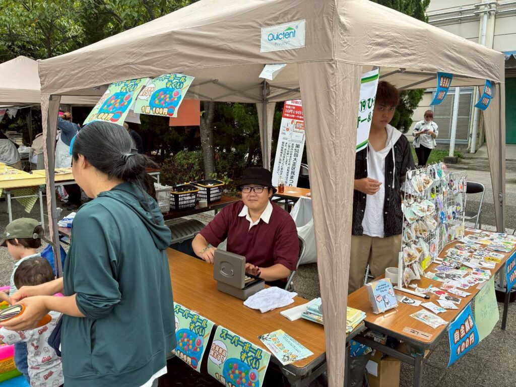 出店ではスーパーボールすくいと、自主製品の販売を行いました。
